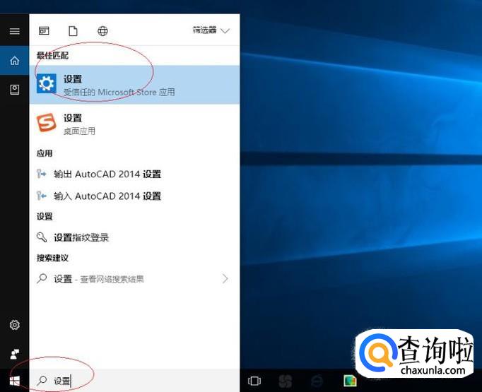 任务栏搜索框输入"设置",点击最近匹配项。