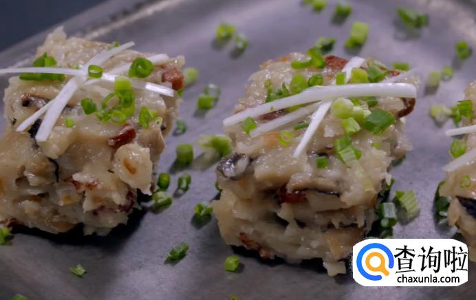 在盆中刷一层油,然后将萝卜糊倒入盆中,隔水大火蒸约45至60分钟。萝卜糕就完成了,撒上小葱粒就可以食用。
