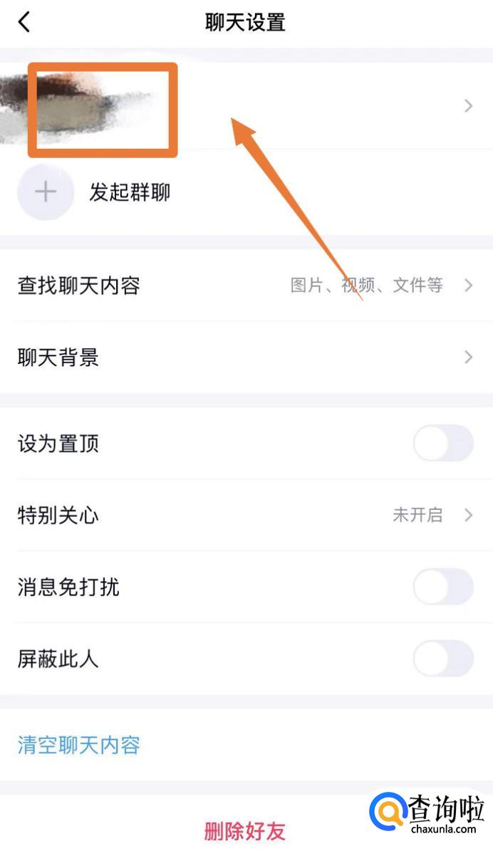 在聊天设置界面当中,点击好友的头像进入个人资料;