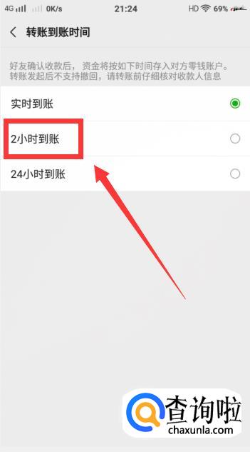 进入【转账到账时间】页面后,点击【2小时到账】即可。