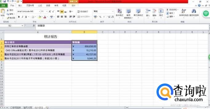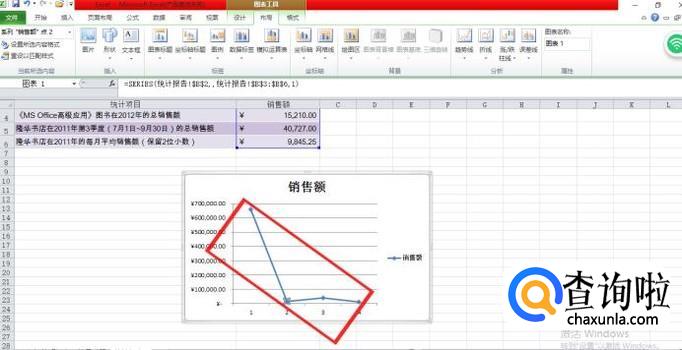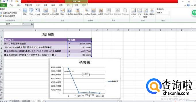 选定"销售额"数据元格;例,如图