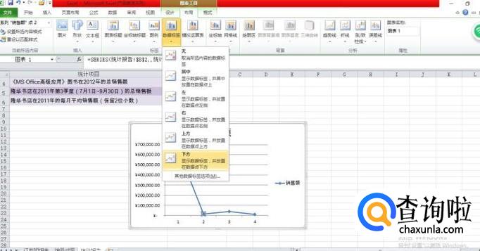 这里没有要求数据的方向,我们就随自己喜欢选择一个,这里选择”下方“;例,如图