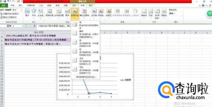 选定图中的折线,会出现对应的”图表工具“,选择”布局“;例,如图