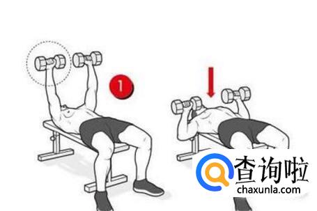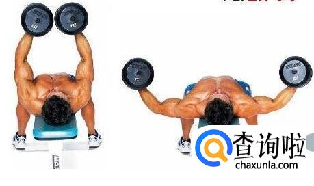 1、仰卧在长凳上,两脚踏实,躯干成“桥形”,上背部和臀部触及凳面,两臂哑铃自然伸直于肩关节正上方,两手间距离略小于肩宽;2、两手持哑铃向体侧慢慢落下,下落过程中,肘间角度逐渐变小,到极限时,肘关节成100-120度角;3、胸大肌收缩,将哑铃沿原路升起,上升路线呈“弧形”,肘间角度逐渐加大,还原成预备姿势。注意:1、哑铃飞鸟是增加胸肌外侧宽度最好的动作,为了取得最佳的锻炼效果,要把哑铃尽量放低,使肌肉得到充分拉伸。在最高点时,不要使哑铃在一起,因为哑铃在最高点时,不能给胸肌提供有效的阻力。2、为了保证锻炼的安全性,最好能用缓慢的速度完成。