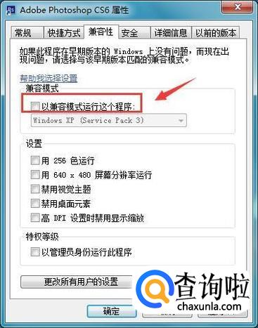 点击属性选项在弹出的对话框内找到兼容性选项,如图所示: