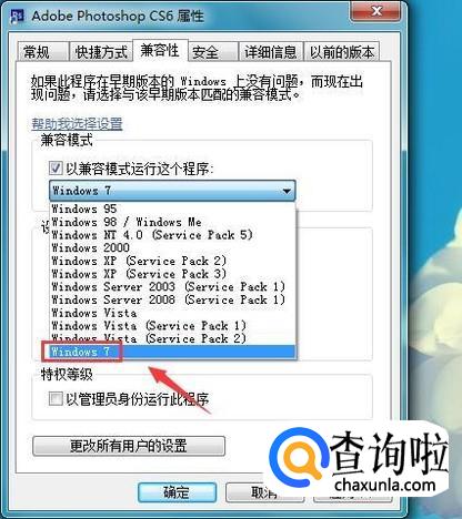 将以兼容模式运行这个程序选项勾选,然后在其内找到与我们对应的系统版本,点击确定我们的问题就解决了,如图所示: