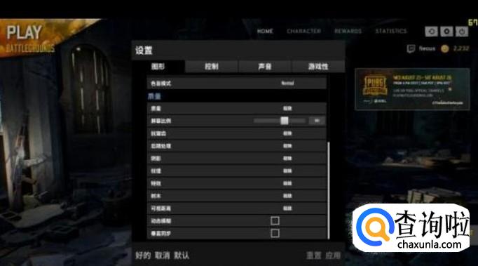 登录绝地求生,在在游戏初始界面找到设置的选项。