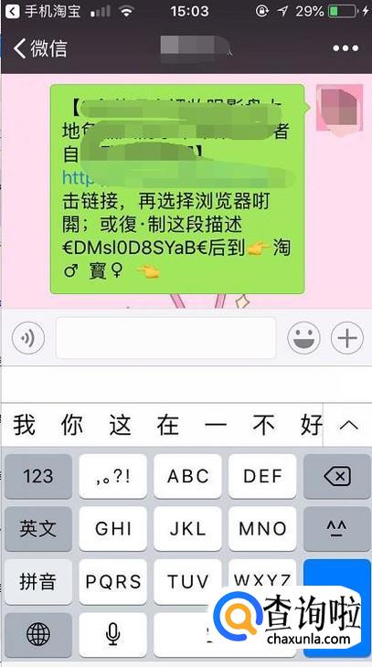粘贴成功后把消息发出去就可以了,这样好友就可以通过这个链接打开该宝贝。
