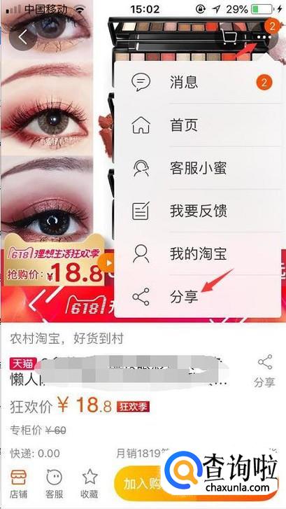 在手机淘宝上想要分享宝贝链接给好友时应该怎么操作呢?下面小编来教大家方法。