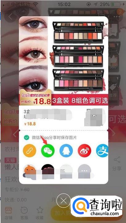 点击分享后会出现复制链接或者分享到微信、qq等等,我们点击微信。