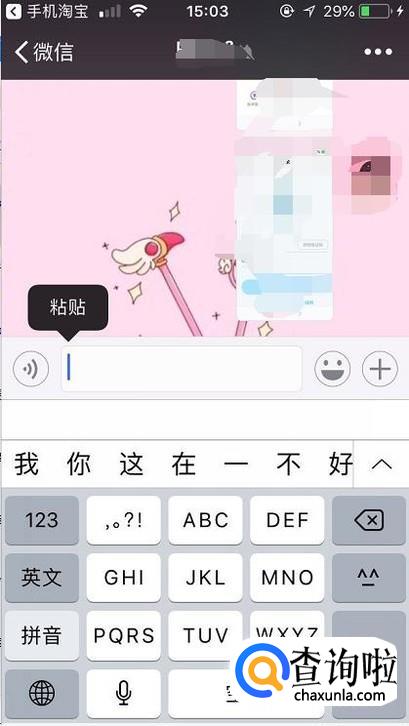 点击微信后就可以选择好友了,长按对话框直到出现粘贴功能。