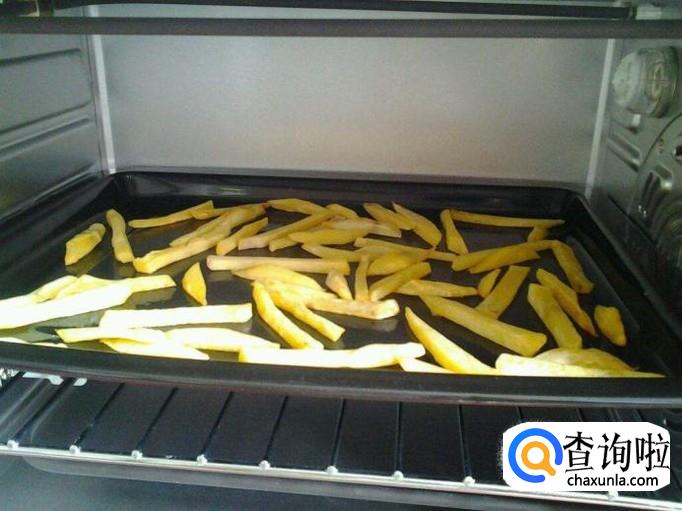 我们也可以把马铃薯条,刷油然后放在烤箱里面用大火烤,烤几分钟就好了。
