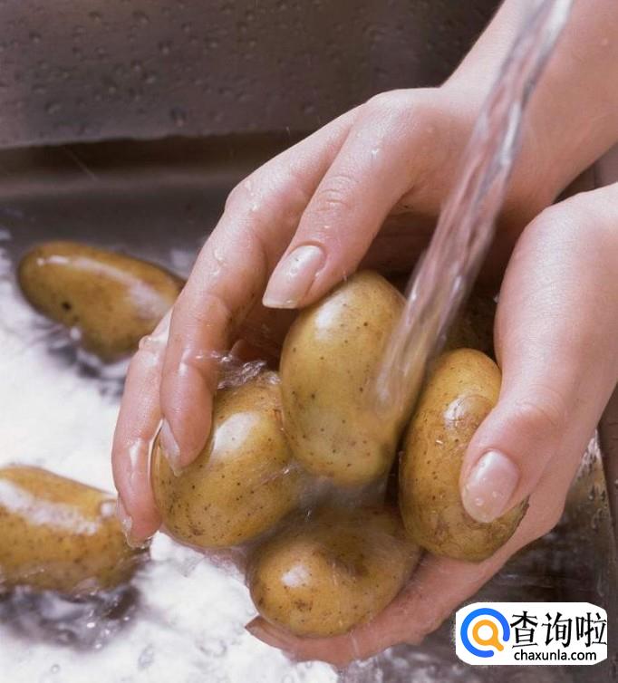 我们应该都知道薯条的材料就只有马铃薯,所以我们先把马铃薯用清水洗净,然后用刮皮器把马铃薯的皮刮干净。