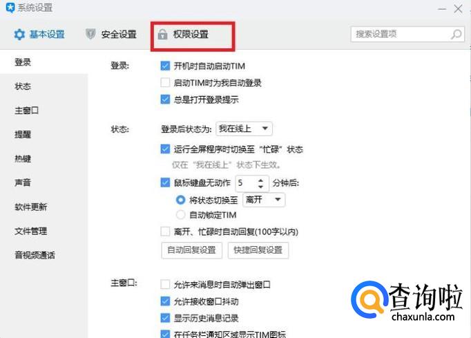 在系统设置中,点击进入“权限设置”分组。
