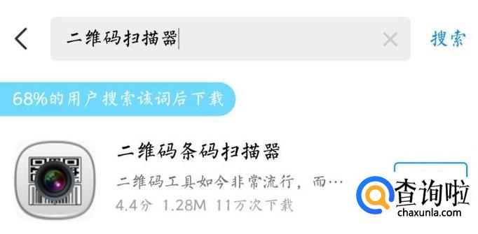 首先打开应用商店,在应用商店中找到任意一款二维码扫描器,点击下载安装就可以用了。