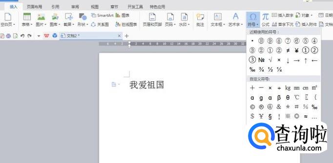 在新建好的word文档里面输入文字,然后鼠标点击需要插入点的两字之间,在菜单栏选择“插入——符号——其他符号”进入。