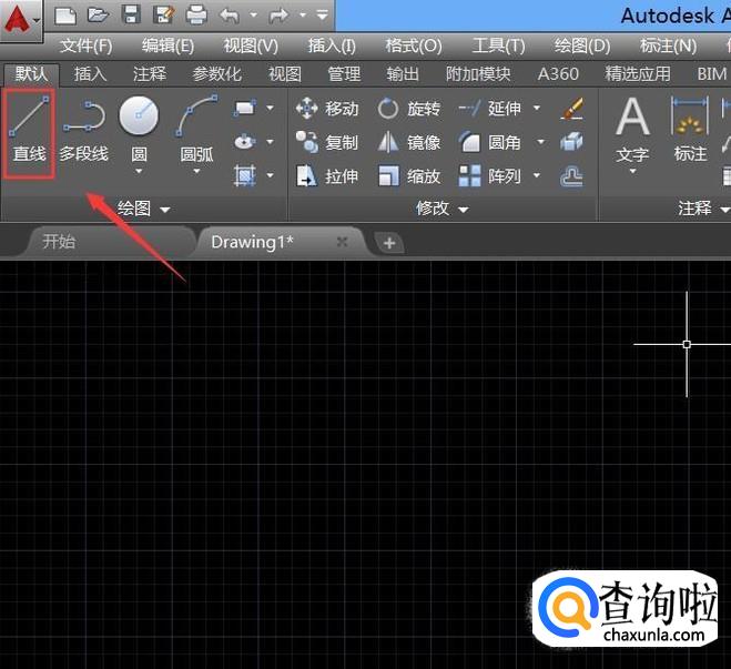 打开CAD之后我们在绘图里找到直线命令,如图所示: