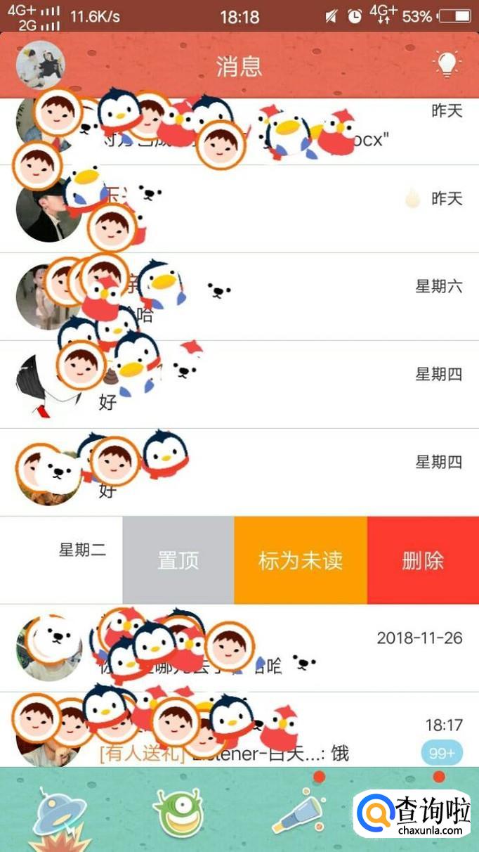 最后,我们从他的名字后边向左滑,再点击置顶即可。