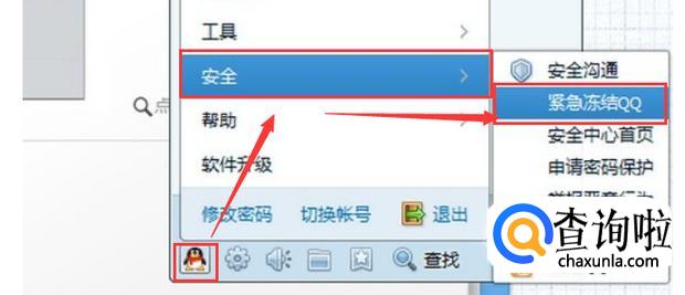 接着点击下方企鹅标志,点击“安全”,然后选择“紧急冻结QQ”。