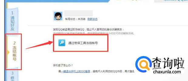 进行冻结账号操作,选择“通过密保工具冻结账号”。