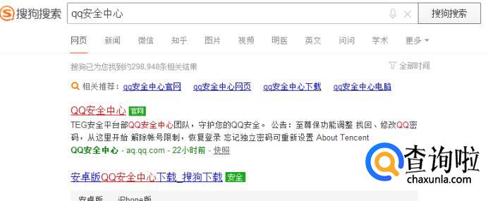 首先使用搜狗搜索“qq安全中心“。