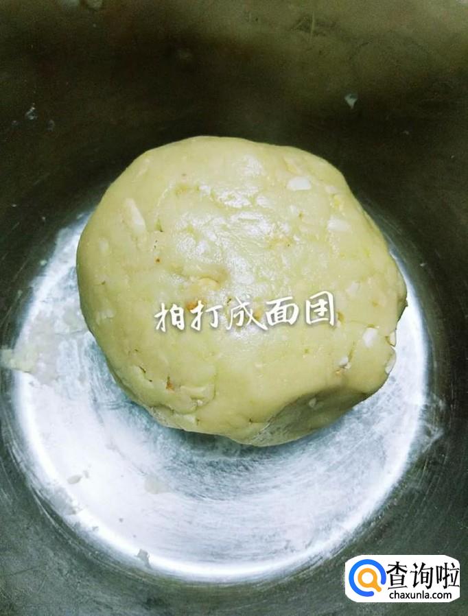 接着把所有食材和成光滑的面团,如下图所示。