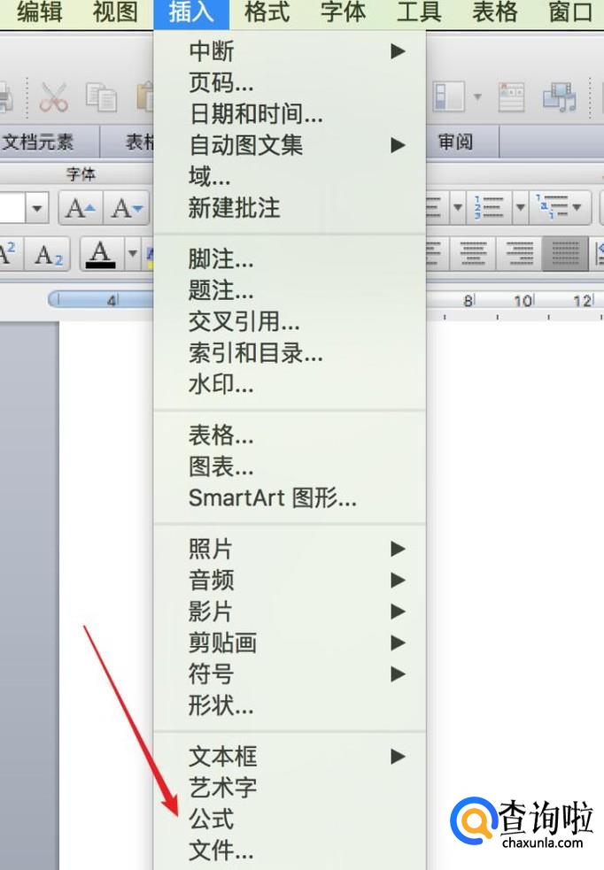 然后点击菜单栏上的‘插入’,再点击‘公式’