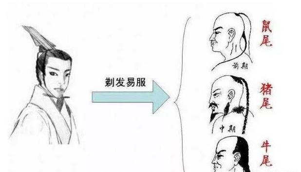 强迫汉人十天内一律与满人一样剔去外周的头发,仅留中间的一点儿梳成辫子。