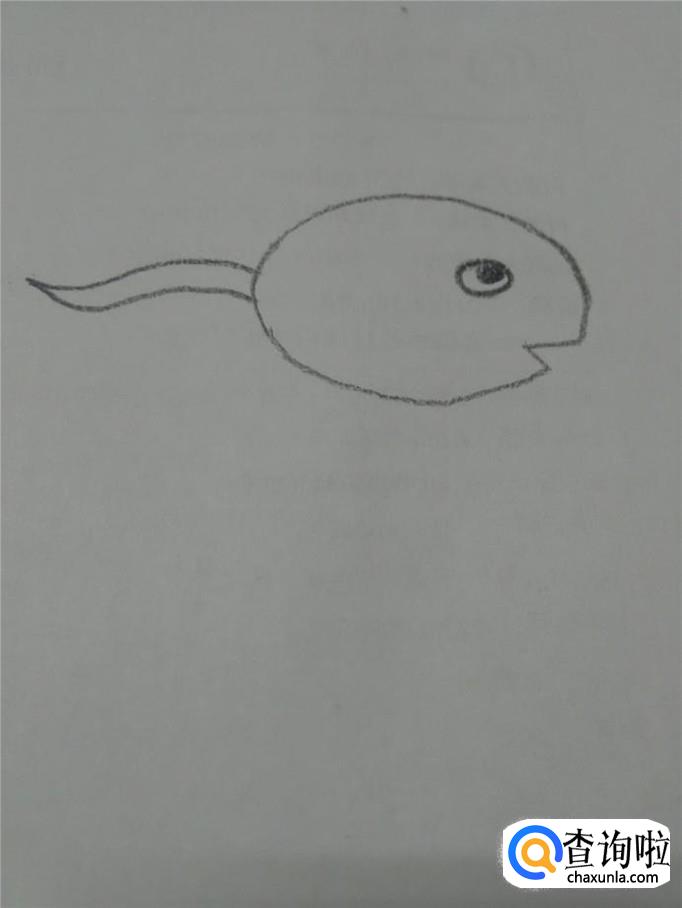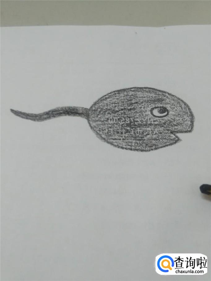 用铅笔在纸上画一个椭圆形,表示小蝌蚪的头和身体,但在椭圆的右下角画一个三角形的缺口,表示嘴。