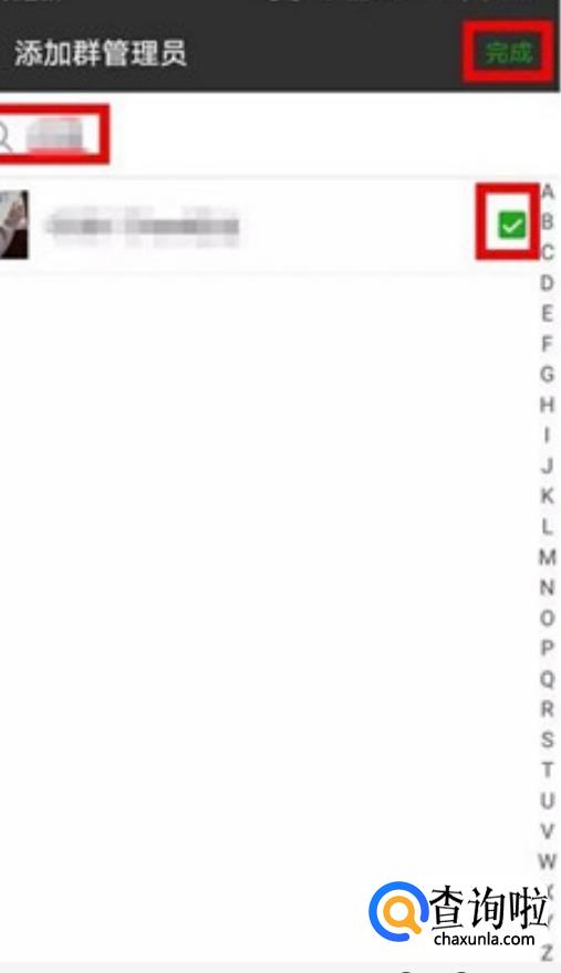 选择要设置群管理人员,将他后面的方框勾选,点击完成;