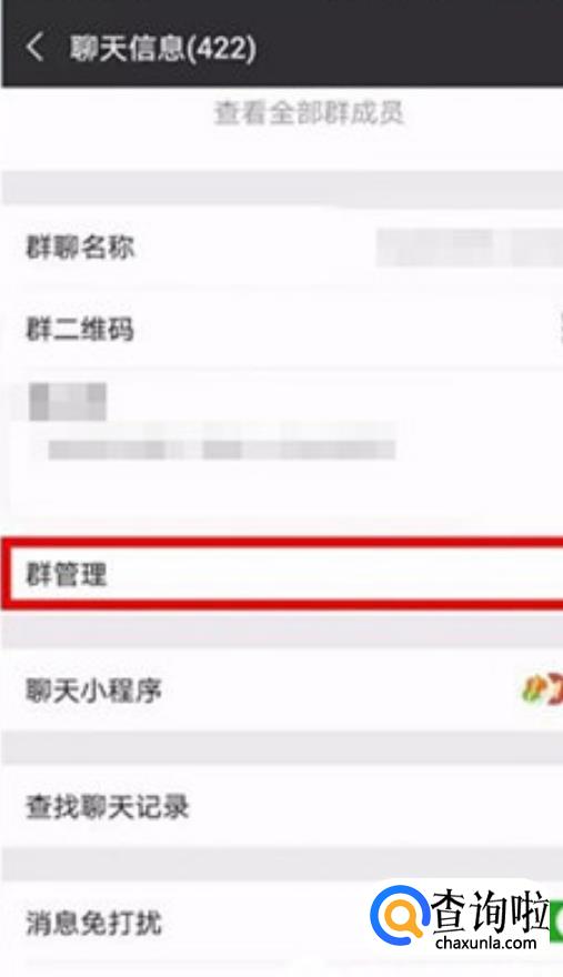 在群设置页面,选择【群管理】,如下图所示;
