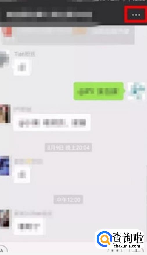 在创建好的群聊界面点击右上角“三个点”的符号,进入群设置,如下图所示;