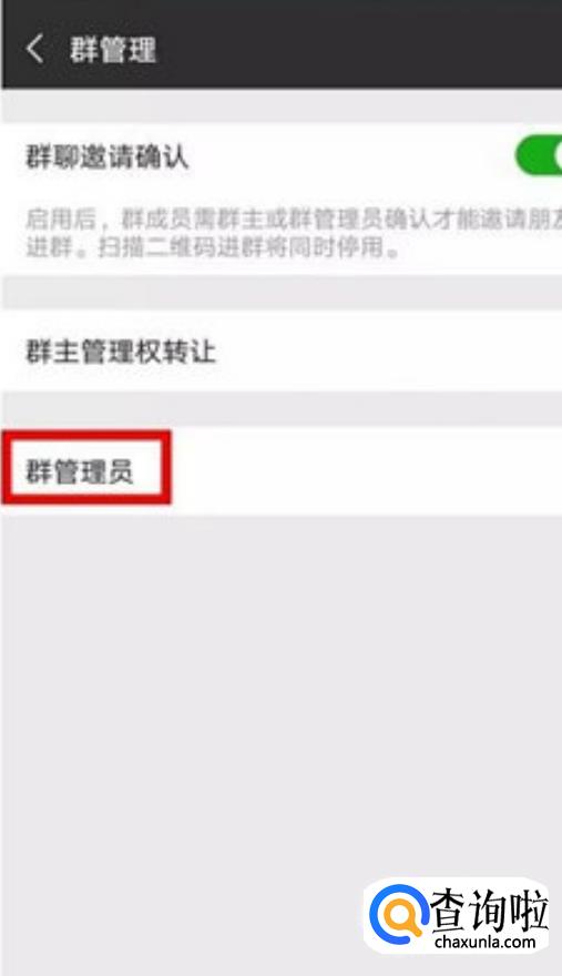 在群管理中点击【群管理员】,如下图所示;
