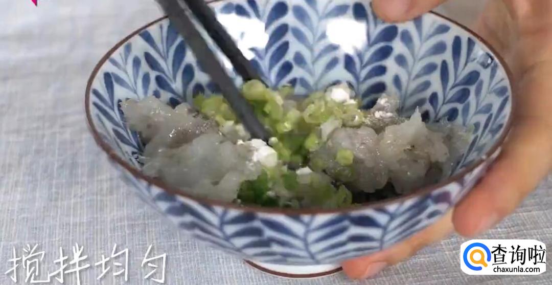 将葱末、盐、胡椒粉、玉米淀粉、橄榄油放入虾仁中拌匀。