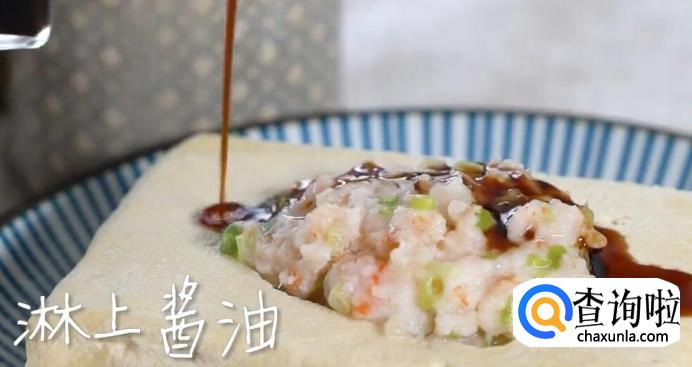 将豆腐放进锅里蒸10分钟出锅,淋上酱油。