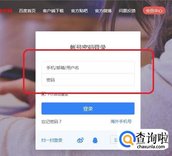 用账号密码登陆,有百度账号就行,没有的话就免费注册一个。