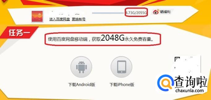 进入“任务”界面,可以看到,只要完成了使用百度网盘移动端的任务,就可以免费扩容了。我们可以采用二维码下载等方法下载手机移动端,然后用账号登陆即可。如图所示,本人已经通过该方法把容量扩容到2T了,需要的朋友可以去试试哦。