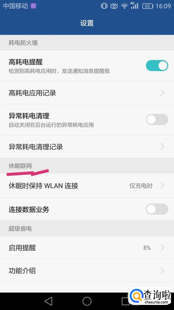 进入设置页面后,可以看到休眠联网下有两个选项。