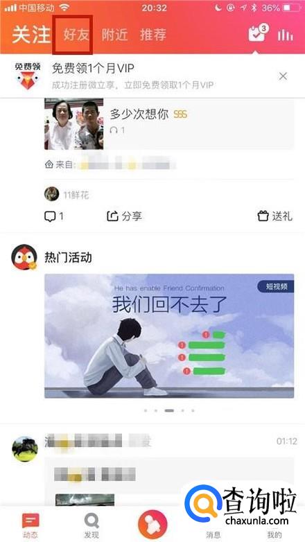 然后点击屏幕上方的好友,如下图所示。