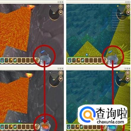 然后分别找到岩浆和水,拿着铁桶右键点击,就分别可以获得盛水铁桶和岩浆铁桶了。如图所示: