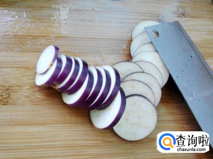 首先我们要先把茄子清洗干净然后把茄子切成片状,(茄子我们可以削皮可以也可以不削皮)这样子方便油炸。
