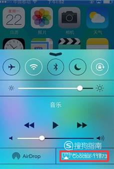 在手机任意界面的底部往上划动,调出控制面板,点击【Airplay】。