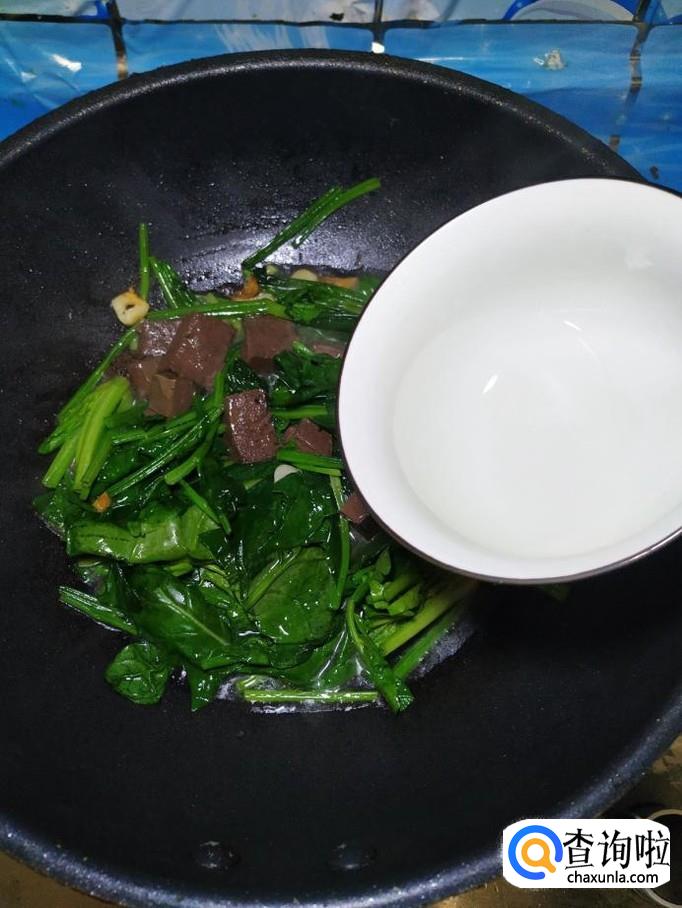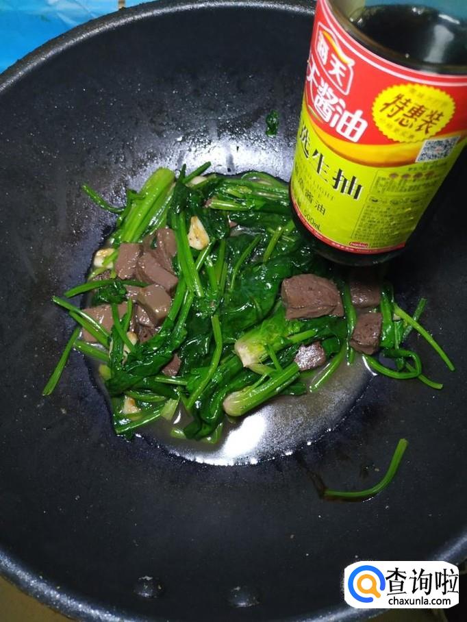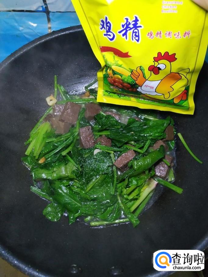 猪血适量,菠菜适量,盐适量,鸡精适量,五香粉适量,生抽适量,蚝油适量,蒜适量。