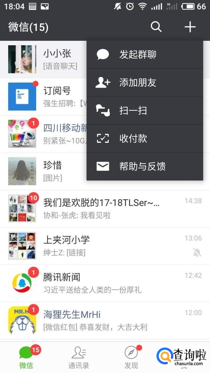 打开微信点击加号,选择添加朋友。