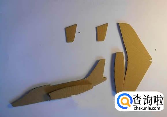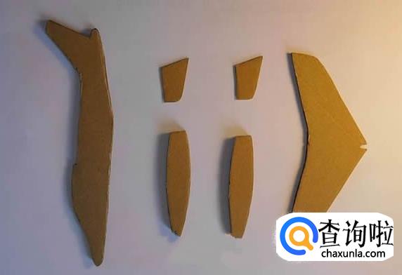 从瓦楞纸上剪切出机身、机翼、尾翼和动力系统。