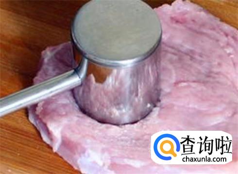 想要吃嫩滑爽口的肉丝,猪肉的选择非常重要,里脊肉很瘦但是吃起来发硬发干,那么猪后腿肉就是最好选择了。买来一块肉之后清洗干净,找个酒瓶子或其他器具敲敲整块肉,让肉质变得松软。