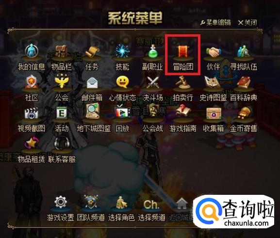 首先,使用“ESC”键唤出系统菜单,点击“冒险团”选项,或直接点击蓝条右上角的图标,进入冒险团界面。