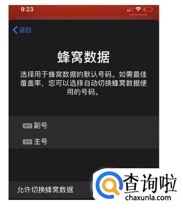 如果我们想要更改上网的号码,请在「设置-蜂窝网络-蜂窝数据」中选择即可,如图所示。