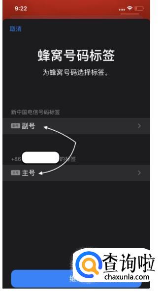 接下来我们可以分别为二个号码选择标签,通常是主号和副号,如图所示。