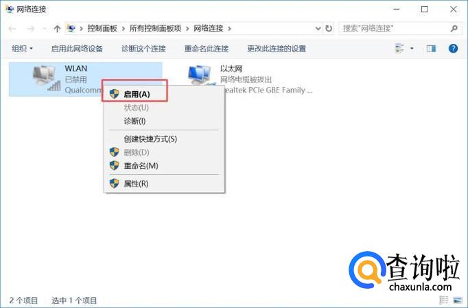 当网络禁用的时候,我们右击选择启用,这样就是开启无线网络。